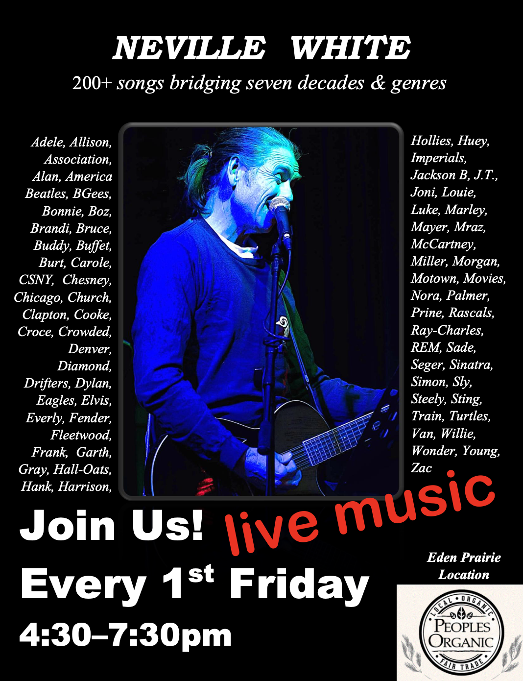 Join us over cocktail or dinner with Neville White 4:30-7:30p3 hrs | multiple datesFree